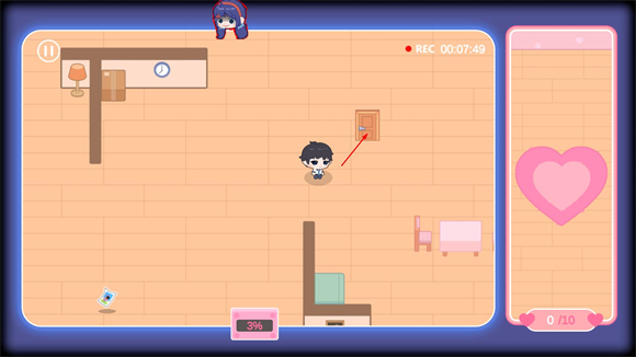 当选择好米塔后,米塔会在游戏者身后跟随移动,拾取场上的道具可以增加顶部的救援进度条,当进度条满后米塔就会被转移到右侧安全区域。