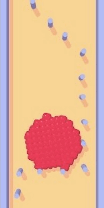 控制一坨红色的黏黏史莱姆,通过流体的运动,来附着在周围的障碍物之上,