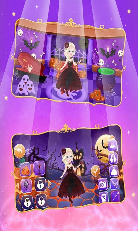 创意服饰 - 每个场景都有专属的服饰可供选择,蛋糕裙子,糖果项链,蜘蛛头饰,上百件服装配饰任意挑选,随心搭配,让宝宝体验一次时尚装扮,实现公主梦;