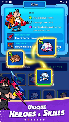 1收集钱币和道具升级角色,提高战斗力;