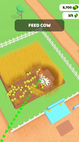 1、在游戏中,玩家需要经营自己的奶牛场,种植收割牧草喂养奶牛,收集产出的牛奶进行出售赚取金钱;