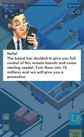 空闲银行大亨作为一款全新上线的模拟经营手游,空闲银行大亨手游中游戏者就是这家银行的行长,学会去管理空闲银行大亨中这个银行,并且合理安排空闲银行大亨手游中的人手!