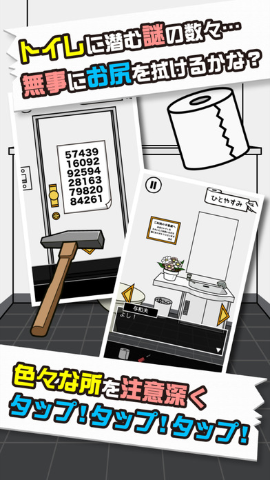 上完厕所后发现没有纸是日系风格的逃脱手游,密室解密游戏,在马桶上坐下就再也下不来,因为发现这个卫生间里少了必要的纸品,没有纸也要擦完屁股才能走人,用前辈遗留下来的线索来找到擦屁股的新办法。