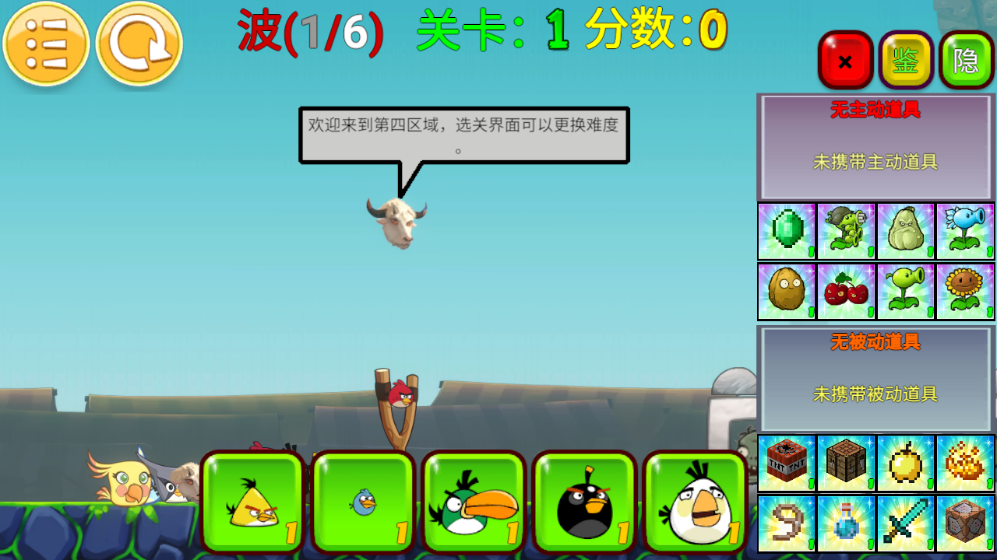 6、左侧是上阵的小鸟和道具区域,右边这些都是可以选择的。