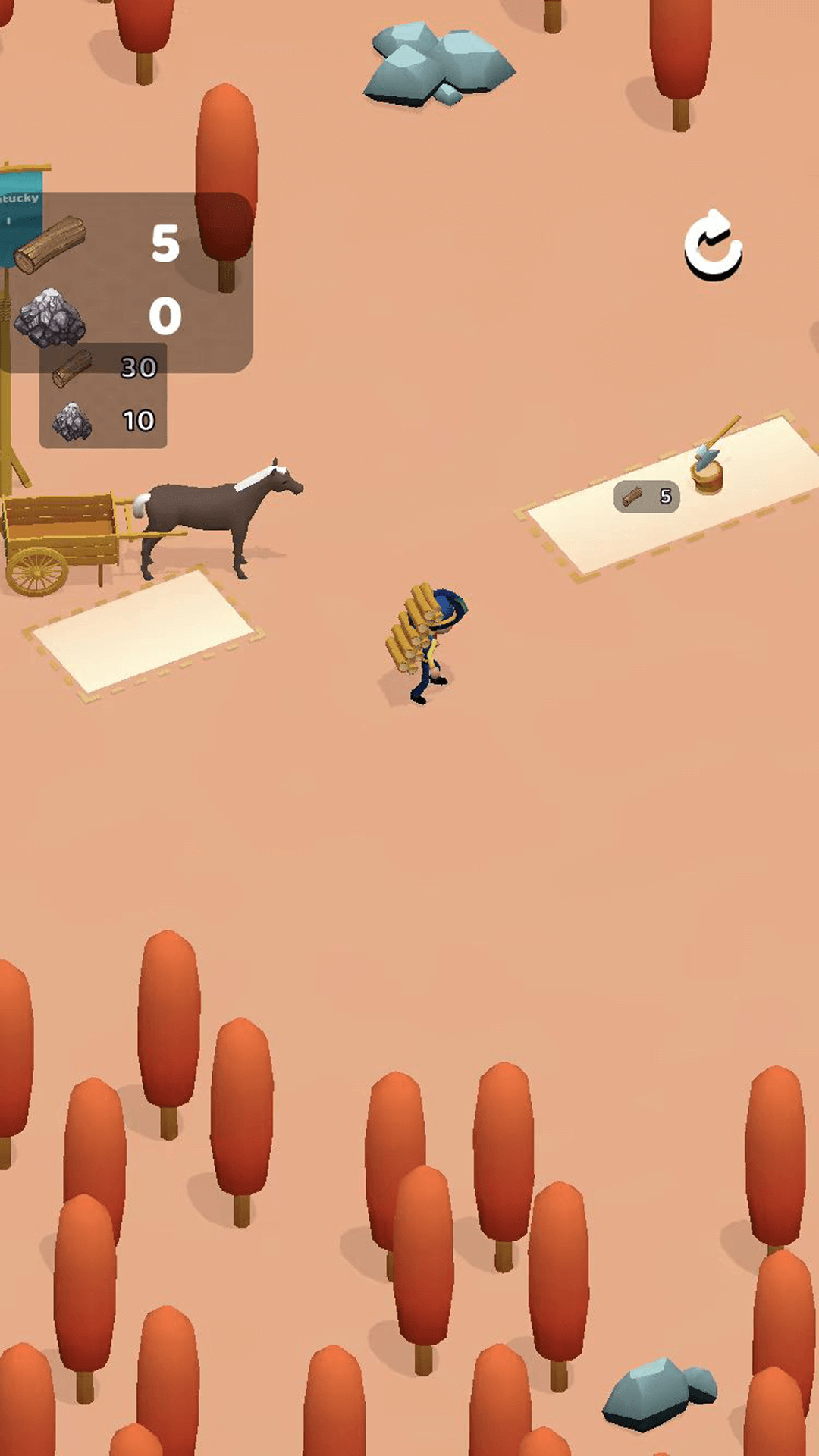 2、您还可以升级您的工具,使其更锋利,砍树更顺畅,玩家需要收集更多的木材,运输更多的木材进行加工。