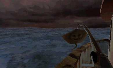 3、渔夫感到强烈的愧疚,于是独自航行想要找回妻子和孩子的尸体。
