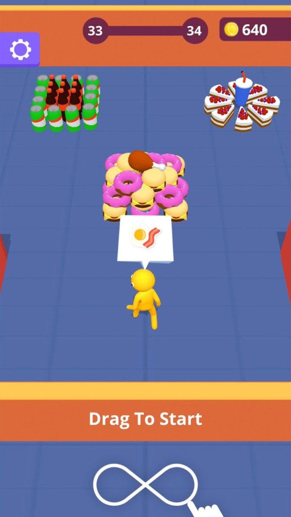 2、在充满食物的桌子上拖动玩家,在这场竞赛中获得大量的美食哦;