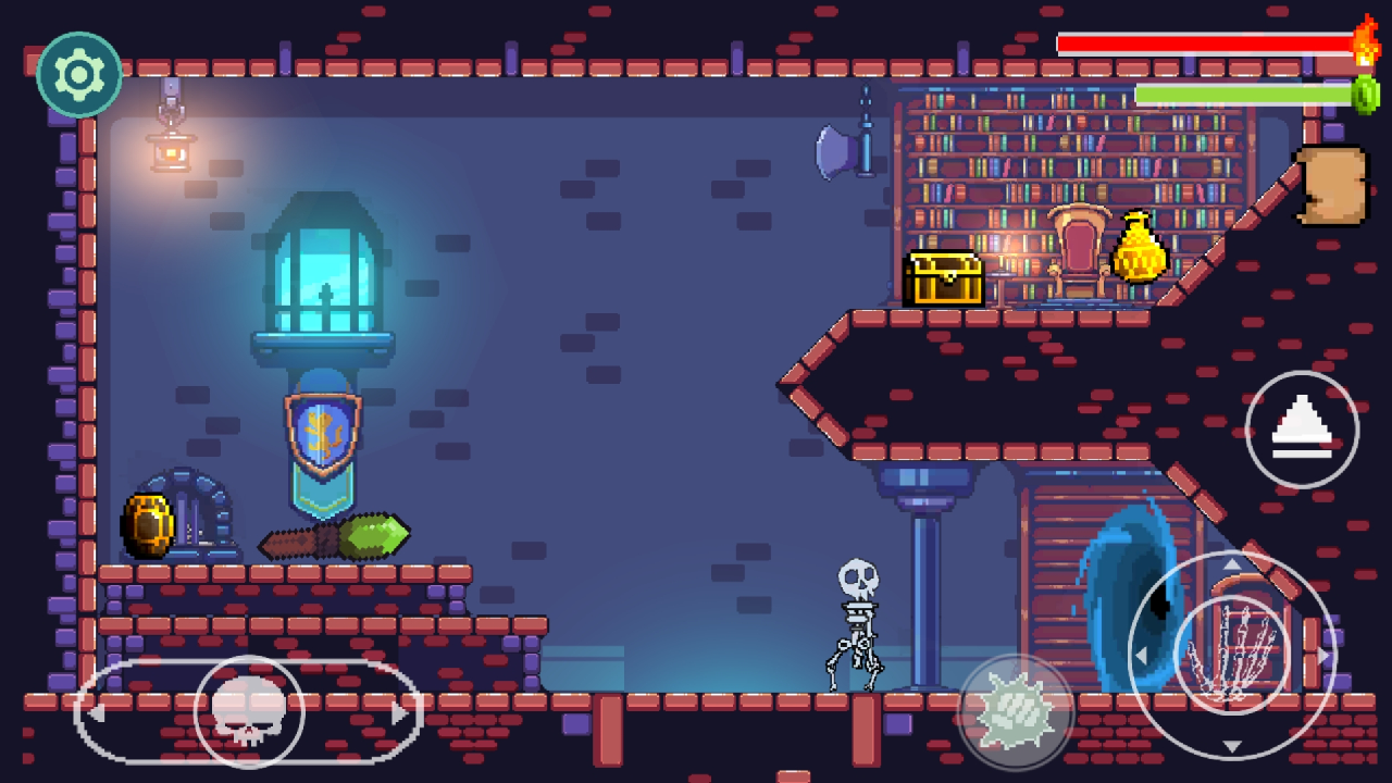 骷髅海盗是一款2D休闲类横版解密游戏,以其独特的画风和趣味玩法吸引了众多玩家。游戏背景设定在一个充满神秘色彩的世界中,骷髅海盗生前贪得无厌,死后仍对人间的财宝念念不忘,于是从死灵世界返回,试图将这些财宝带回自己的领地。玩家需要通过操作角色,利用各种道具和技巧,帮助骷髅海盗完成他的遗愿。操作方面,左下角的横向摇杆控制角色的左右移动,右下角的摇杆控制手臂摆动,上箭头按钮用于跳跃,特殊道具的拾取和丢弃则通过解松按钮实现。游戏机制简单却充满挑战,玩家需要在地图中收集三个财宝,并将它们带入通往死灵界的传送门,最终完成任务。