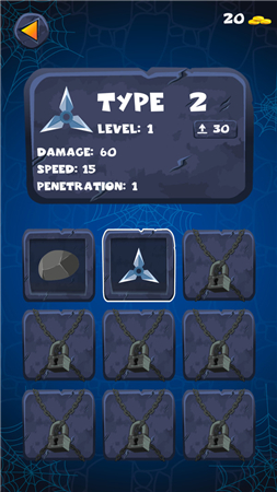 1、忍者的武器库中有着众多的武器,你需要靠自己慢慢的解锁武器