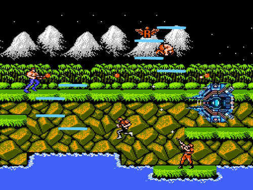 玩家扮演特种兵,面对大量的敌人,从人和机器到异形和外星人.在战斗途中,玩家可以击落飞行的特殊目标来获得各种强化.玩家在开始时持有普通冲锋枪,可以向八个方向发射,但是在得到强化武器之后会换用其他武器.玩家可以跳跃并在跳跃时用方向键控制移动和开火的方向,而且跳跃时的方向控制在游戏进程中十分重要!