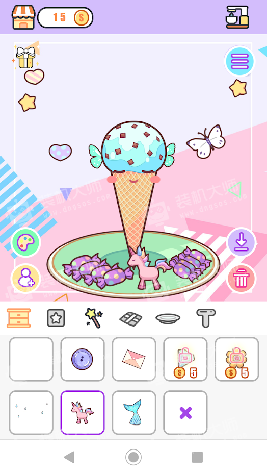 4、海量的贴纸和装饰物任你挑选,各种各样的甜品美食可以选择,玩起来非常的轻松。