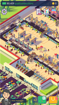 汽车制造大亨游戏这是一个汽车制造的时代,你将成为一名汽车厂的厂长,为了让自己的工厂变得更大更顶级,你就需要不断的扩大自己的规模提升自己的等级,当然升级是需要金钱的,你可以通过完成各式各样的不同的顾客订单来挣到更多的钱,你可以通过升级自己工厂的零件设施来提高产量。招募跟多的工人一起帮助你打造属于自己的的商业帝国。