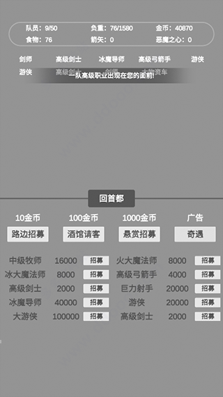 4.点击路边招募,这里可以招募初级牧师、呆萌新、小物资车、中级剑士等队员,但是也要看自己的金币够不够;