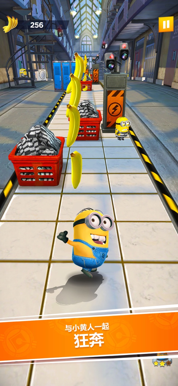 游戏场景细腻,富有立体感,玩家在这里扮演电影中无处不在的小黄人。能跑得快、跳得跳、飞得飞,沿路收集香蕉、打倒坏人,以获得“年度小黄人”称号为目标。