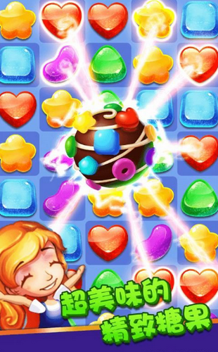各种各样色彩斑斓的糖果,想尽一切办法将相同形状的糖果连成一条线。