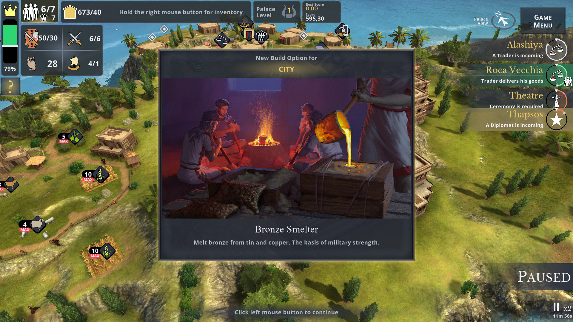 进行各种商品贸易,从而扩大您在克里特岛的帝国的威望。利用从世界各地获得的知识来进行农业,建筑或手工艺品等领域的改进。