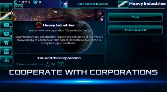 这不仅仅是一个点击器,闲散游戏或者打击乐游戏,更是一个商业模拟器游戏。你可以在里面成为太空大亨。