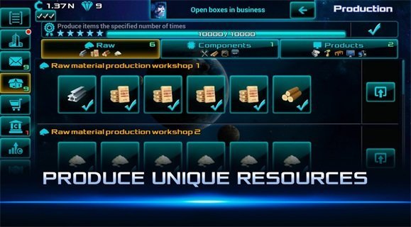 一个科幻世界等着你。作为一个商业大亨,请考虑你的发展战略,自己生产商品,增加产能或者只是在全球市场购买商品。