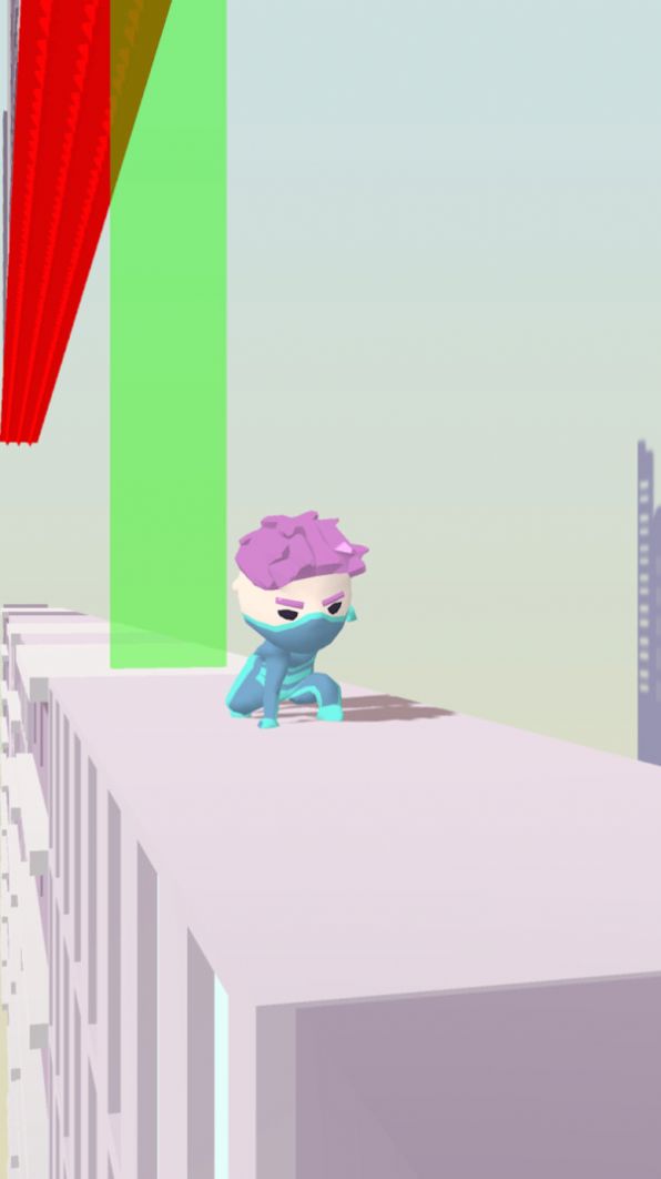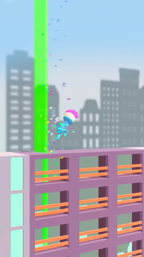 3.按下屏幕,施放抓钩,钩住屏幕中的吊索,小伙伴们会根据吊索的勾线角度自由滑落