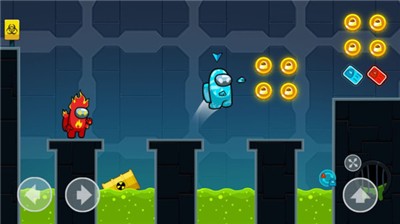 3、简单的控制红色和蓝色的冒名顶替者,一路移动,只要顺利的抵达门口即可,这样就能成功跑出去了。