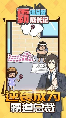 霸道总裁成长记是一款卡通漫画风格的模拟经营游戏,玩家在游戏中扮演一个乞丐,突然有一天实现了不可思议的逆袭,从一个乞丐变成来富有优秀的霸道总裁,玩家在游戏中需要完成各种冒险解谜,融合解谜、开发、搞笑等元素的休闲趣味益智游戏,随时随地开始一次冒险。