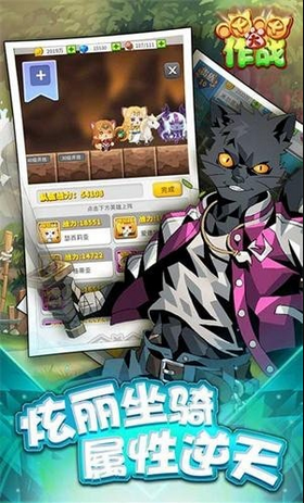 这是一款改编自动漫类型的手机游戏,在游戏中,我们可以选择自己喜欢的拟人宠物猫进行饲养,我们可以带它们去打怪兽,升级,更多有趣的冒险游戏。