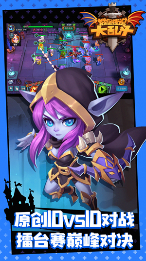 【极具创新的战斗模式】10vs10棋盘对战,通过战前阵容搭配和战斗中的技能选择,来取得对战的胜利。和一般卡牌点击图标释放技能不同的是,在大乱斗的战斗过程中,每一次释放技能都要根据当前的战斗局面来做出合理的选择,从而来达到最大的收益。你会惊奇的发现,其实你是在下棋...... 支持玩家实时对战。