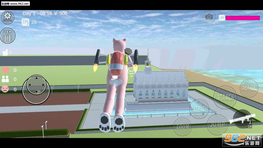 3、游戏中你还可以开汽车、开启自己的喷气式背包在天上飞,超多天马行空的玩法等你来发现。