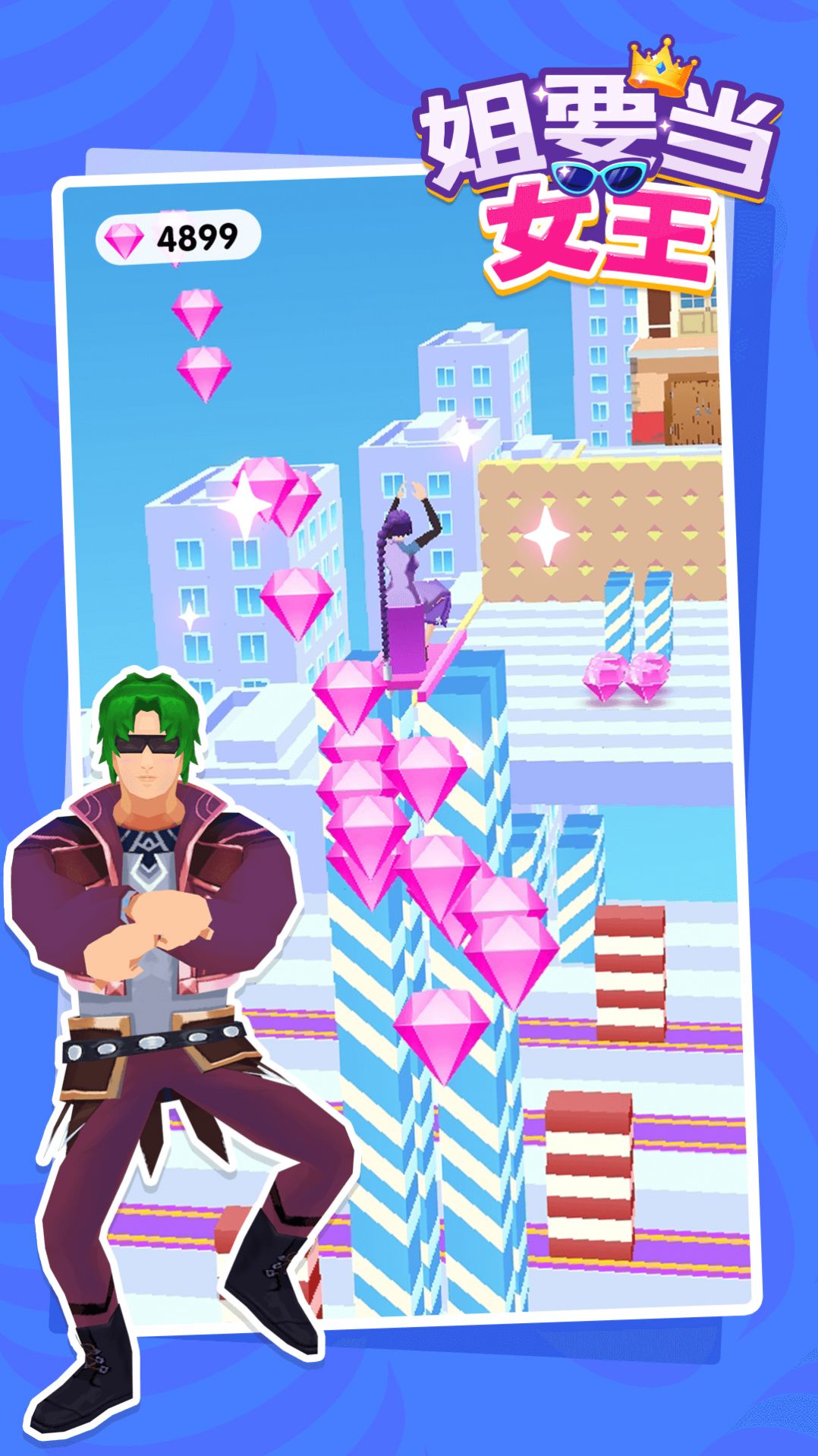 姐要当女王游戏是一款能够给予我们带来诸多欢乐跑酷体验的休闲小游戏。现在展现你高超的指尖跑酷技术开启最具有乐趣的跑酷比拼吧,我们可以享受精彩有趣的指尖跑酷玩法,和众多跑酷达人在同一个场景之中展开竞争,展现非凡的跑酷实力,赢取到场下观众们的喝彩。