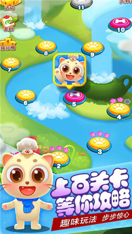 1.是一款Q萌的猫咪消除游戏,采用经典的消除玩法和红包奖励。