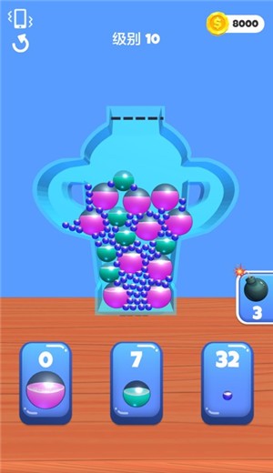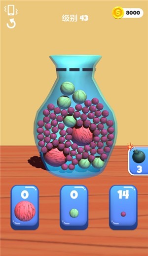 2.玩家需要通过你的手指去进行合理的分类,让他们滚动到指定的容器里面不能混淆,整齐摆放之后就得分了。