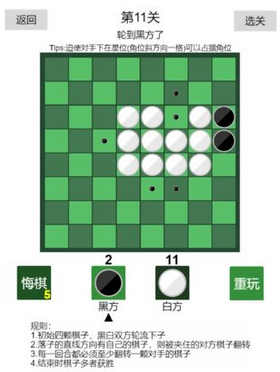 2,游戏规则简单易懂,通过彼此翻转棋子,根据棋盘上谁有更多的棋子来决定胜负,游戏考验玩家头脑和技术水平。