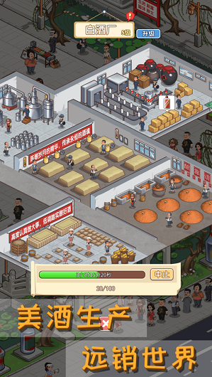 毛台镇传说游戏是一款白酒厂经营类游戏,在游戏中玩家将以白酒厂长去开启自己的经营致富之路,通过建厂,酿酒售卖来获得丰厚的资本,同时不断扩张经营规模来打造知名的白酒品牌走向全世界。