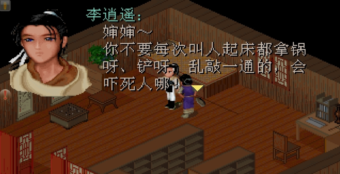 之後便在东厢房,出房门在庭院中与月如谈话再到西厢房和灵儿谈话再到前厅会有算命仙来合八字突然西厢房发现妖怪赶至西厢房。
