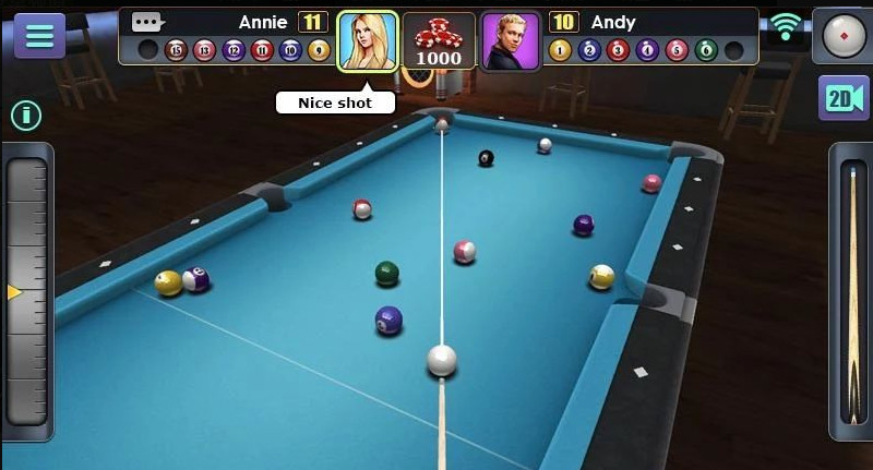 2、所有的玩家需要通过白球所在的位置进行撞击,运用不同的技巧与更多的对手进行比赛。