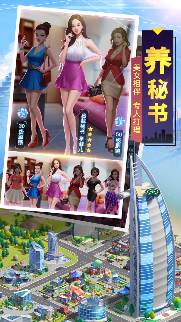 明日大亨开挂人生手游是一款商业题材的角色扮演模拟手游。精准的投资眼光使你玩转开挂人生的必要条件,将自己的商业帝国拓展到各个不同的领域,赚取大量的利润,招募秘书来协助自己处理工作和生活上的事情,各种豪车名车任你挑选。你就是明日大亨!