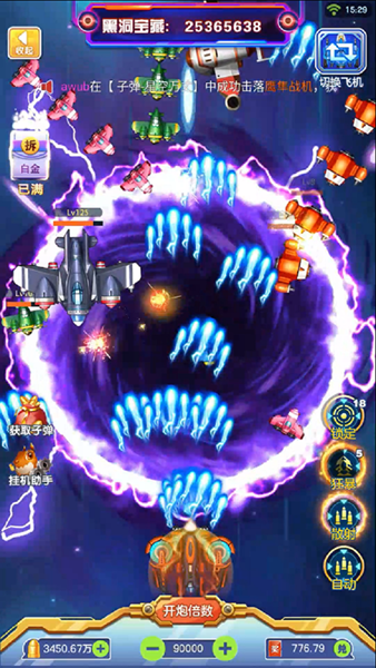 3、击败敌机,赢取积分,得到大量的红包奖励,升级战机,提高性能。
