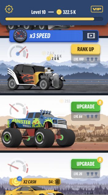 2、利用任务来获取收益,并解锁和升级高性能车辆,让比赛更加过瘾;