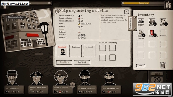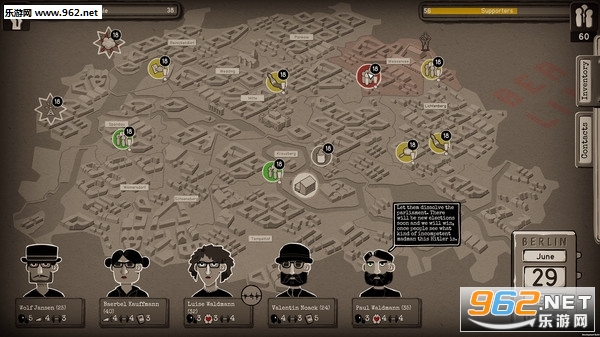 时间设定在1933年的柏林。你扮演一个小型抵抗组织的领袖。组织成员之中有犹太人、天主教徒、共产党人、爱国者等等。他们只是普通人,而再也无法袖手旁观的决心让他们走到了一起。你的目标是在力所能及的范围内对政权进行打击,如散发宣传单让大众知晓纳粹真正的意图、在墙上刷标语、暗中破坏、搜集情报以及招募更多追随者。所有的一切都必须在暗中进行。如果政权势力得知了你们组织的存在,每名成员都将危在旦夕。