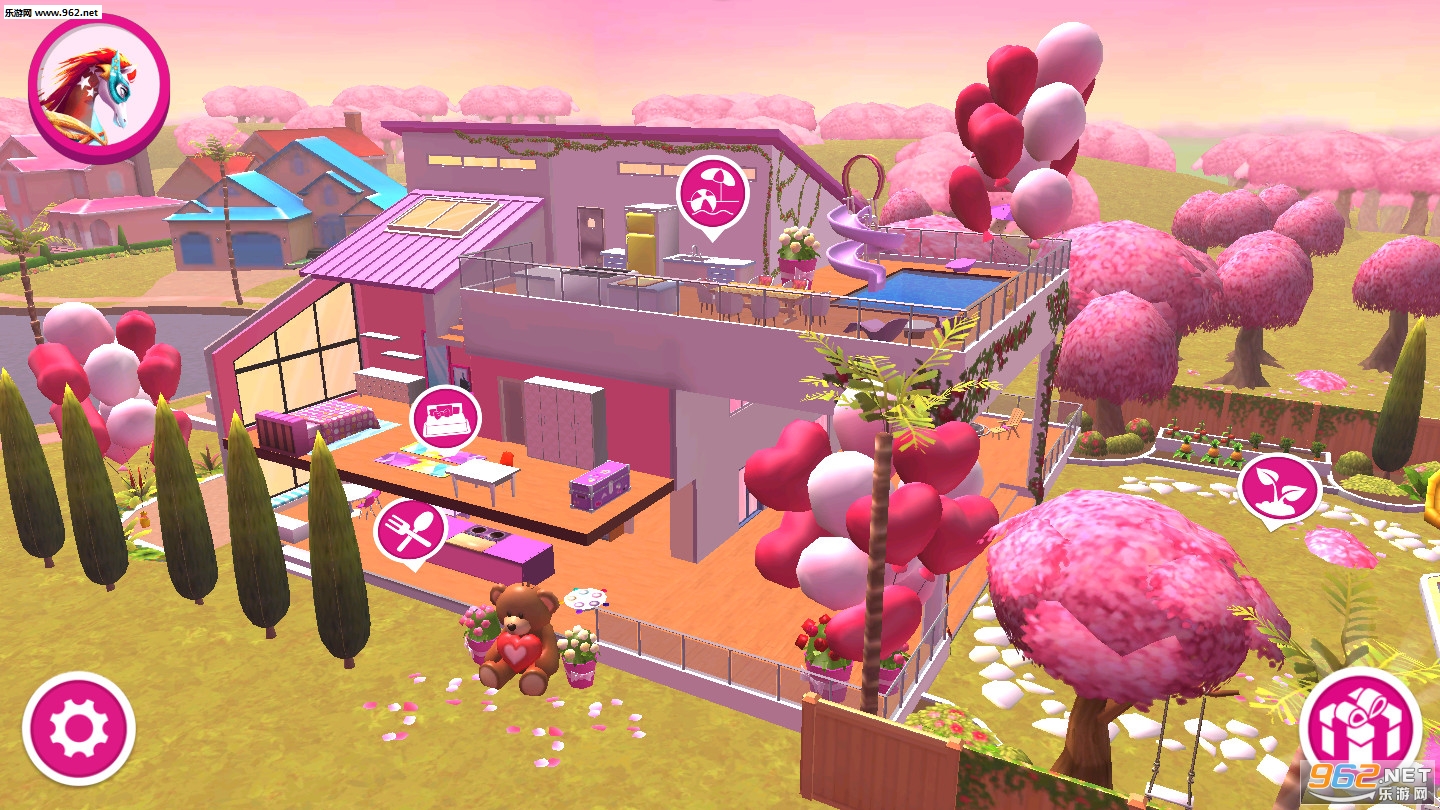 我是芭比!与我们一起在梦幻屋中度过一年中最浪漫的时光!我和姐妹们用很多可爱壁纸、心形气球和美丽花朵精心装饰了梦幻屋。情人节庆典快乐!