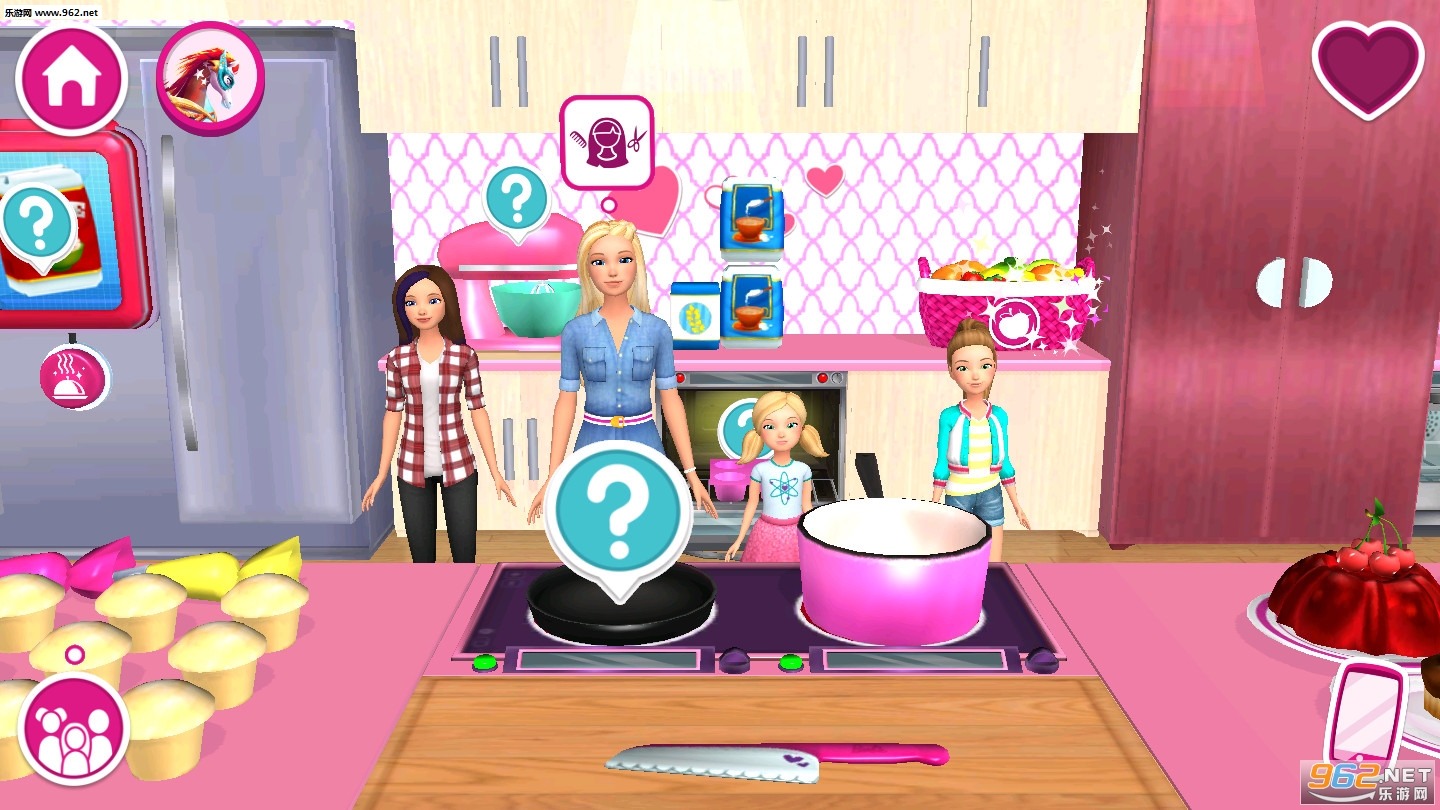 请帮我和我的朋友们打扮得时髦出彩,拍出美美的照片!跟随我们踏上刺激的梦幻屋大冒险,体验一切皆有可能!创建属于你自己的芭比梦幻屋体验,随心装饰每个房间。这是我的死党和狗狗!快来参加各式有趣活动:烘焙、跳舞或经典的泳池派对!
