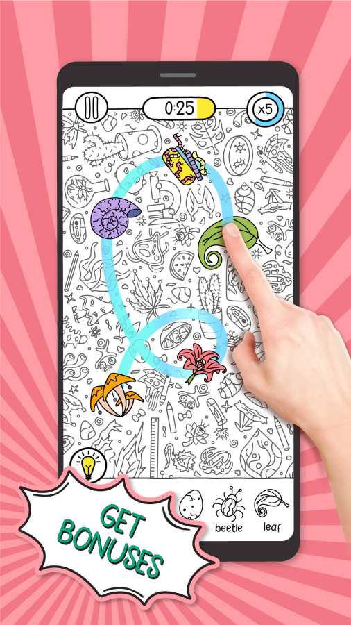 现形游戏是一款经典的寻物游戏。考验玩家眼力与耐心的时刻到啦!在满满的物品之中找到关卡指定的物品,数百个关卡的挑战绝对是一场关于眼力的挑战,你要面对的是相近物品的迷惑,变色龙式的颜色掩藏,在众多的物品之中找到指定物品,简单也不简单,轻松也不轻松,赶紧下载游戏来挑战吧!