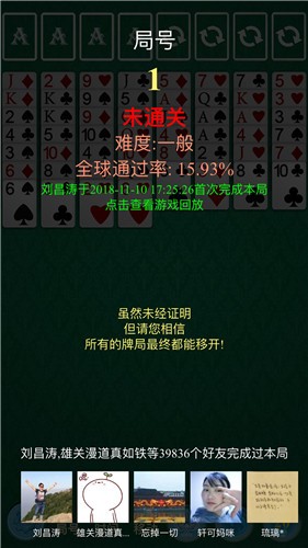 2,后面四个无标志的代表其他除老A以外的牌都可以。游戏开始后,所有的牌都是显示出来的,不需要玩家去凭运气去翻牌了。