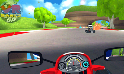 模拟卡丁车的VR游戏,采用精致的3D卡通风格,创造了一个非常可爱的卡通世界,身临其境的感觉加速卡丁车,开始刺激的狂飙吧。