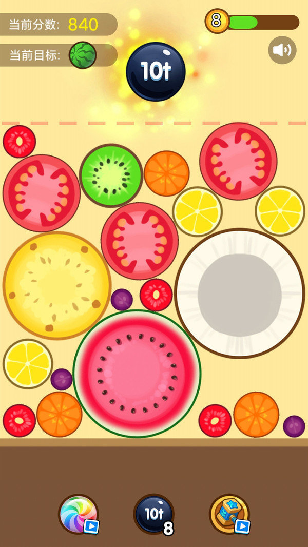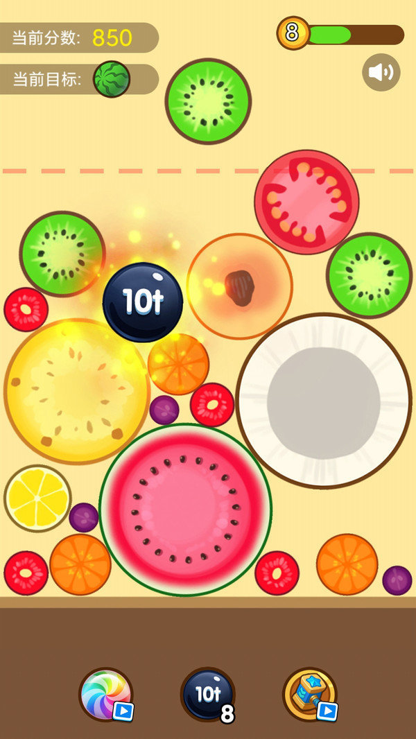 4、玩家们从一开始就要计划好自己的布局,尽量让更大的水果在更下层的位置