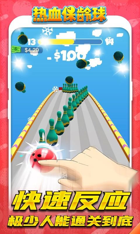 用你的手指控制保龄球的移动轨迹,不断击打瓶子来获得奖赏。