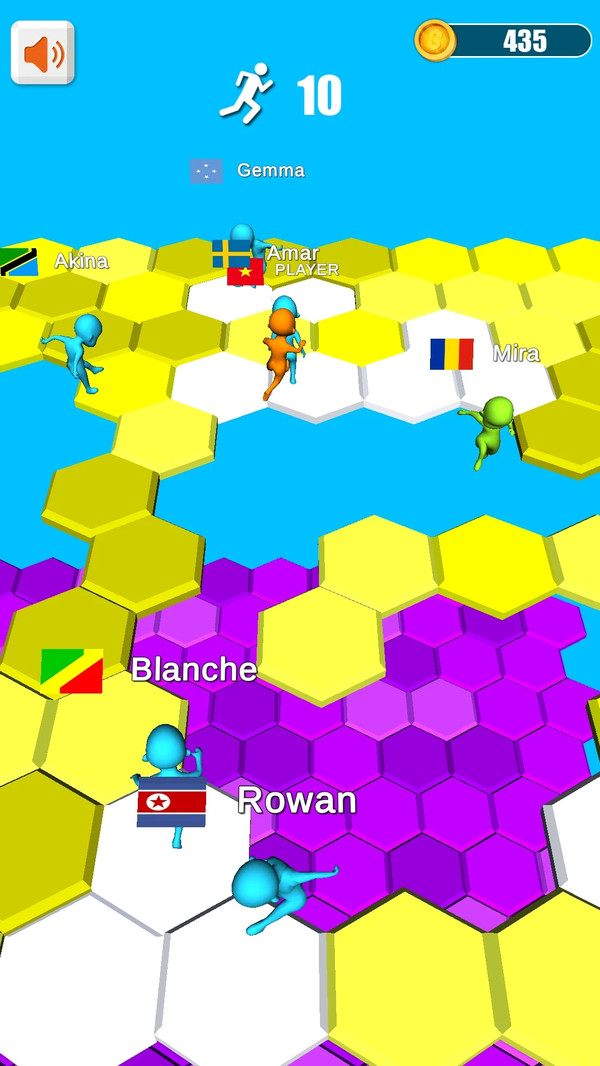 冒名者大乱斗游戏是一款魔性十足的多人休闲竞技类手游,联机模式让你匹配不同国家的玩家同场竞技,选择不同颜色代表的小人不断踩踏,让你的领地不断变大!!!