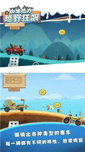 1.每一关你都会遇见不同的越野障碍,你需要利用完美的驾驶技巧来越过这些不同的障碍。