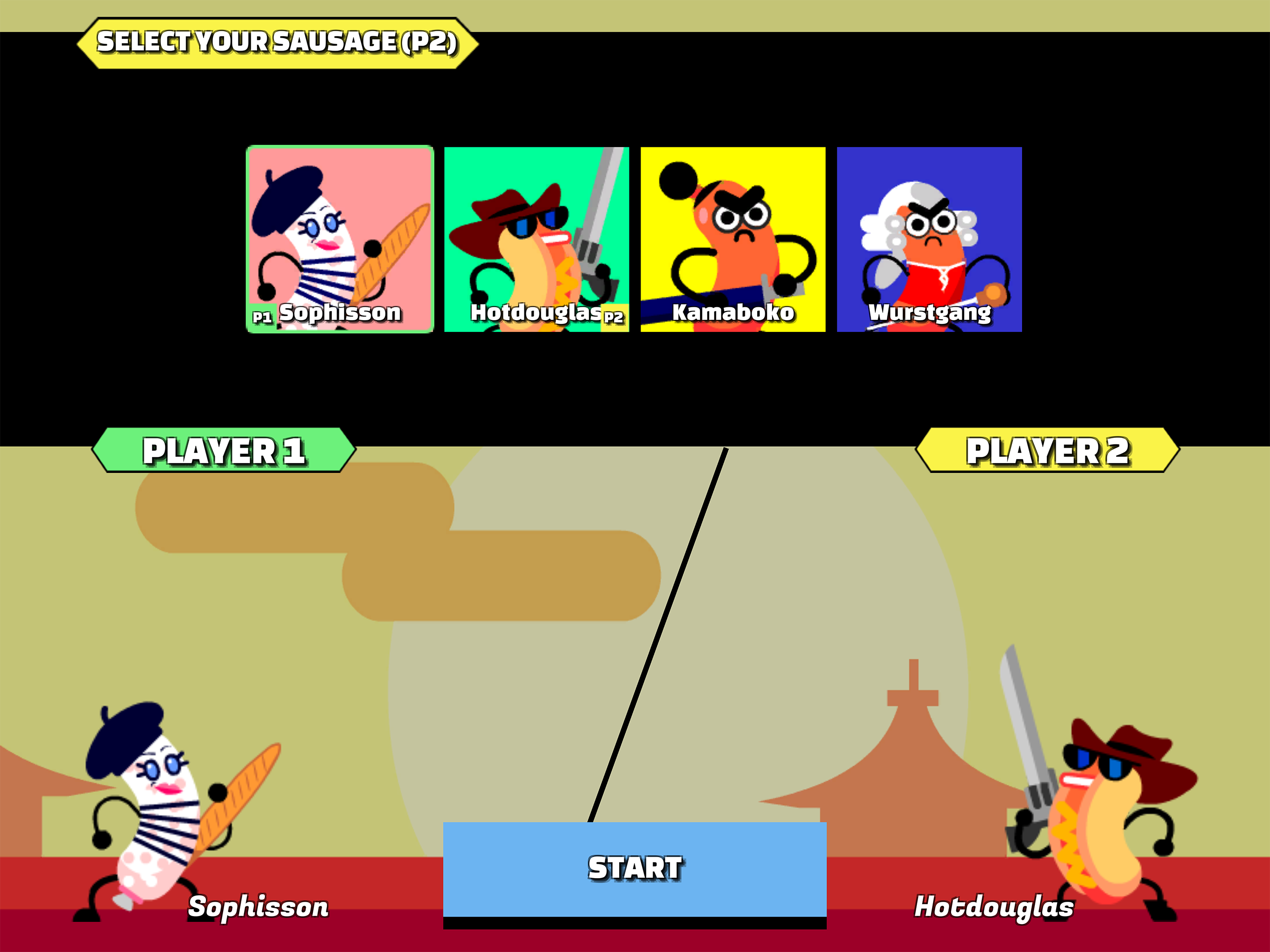 2、游戏有点像迷你版的大逃杀,不过香肠们使用的武器是自己的拳头和身体,滑动方向键让香肠移动,遇到敌人了就准备发起攻击;