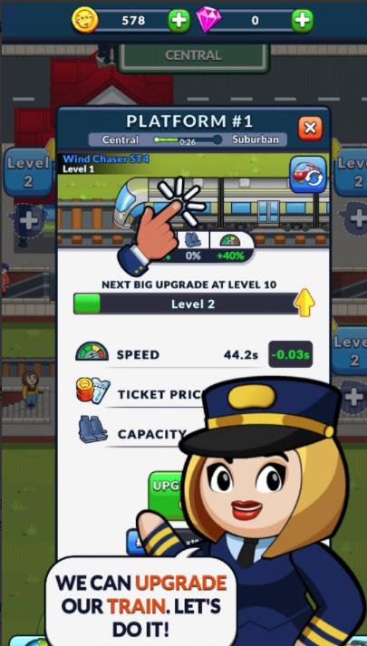 放置列车游戏是一款好玩的模拟经营类型的游戏,游戏有非常多的关卡可以尽情的挑战闯关,你需要控制列车进站,招募很多的员工为你工作,建立很多的列车相关的设施,玩法非常的简单有趣,还有道具可以使用,感兴趣的小伙伴快来下载游戏试玩一下吧。